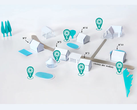 Afin de situer les lieux de prises de vues, autour de ma maison, j’ai indiqué sur une maquette les endroits où j’ai déclenché. Mes voisins et ma famille reconnaîtront aisément ces lieux. Pour les autres… j’ai les preuves, rassurez-vous !